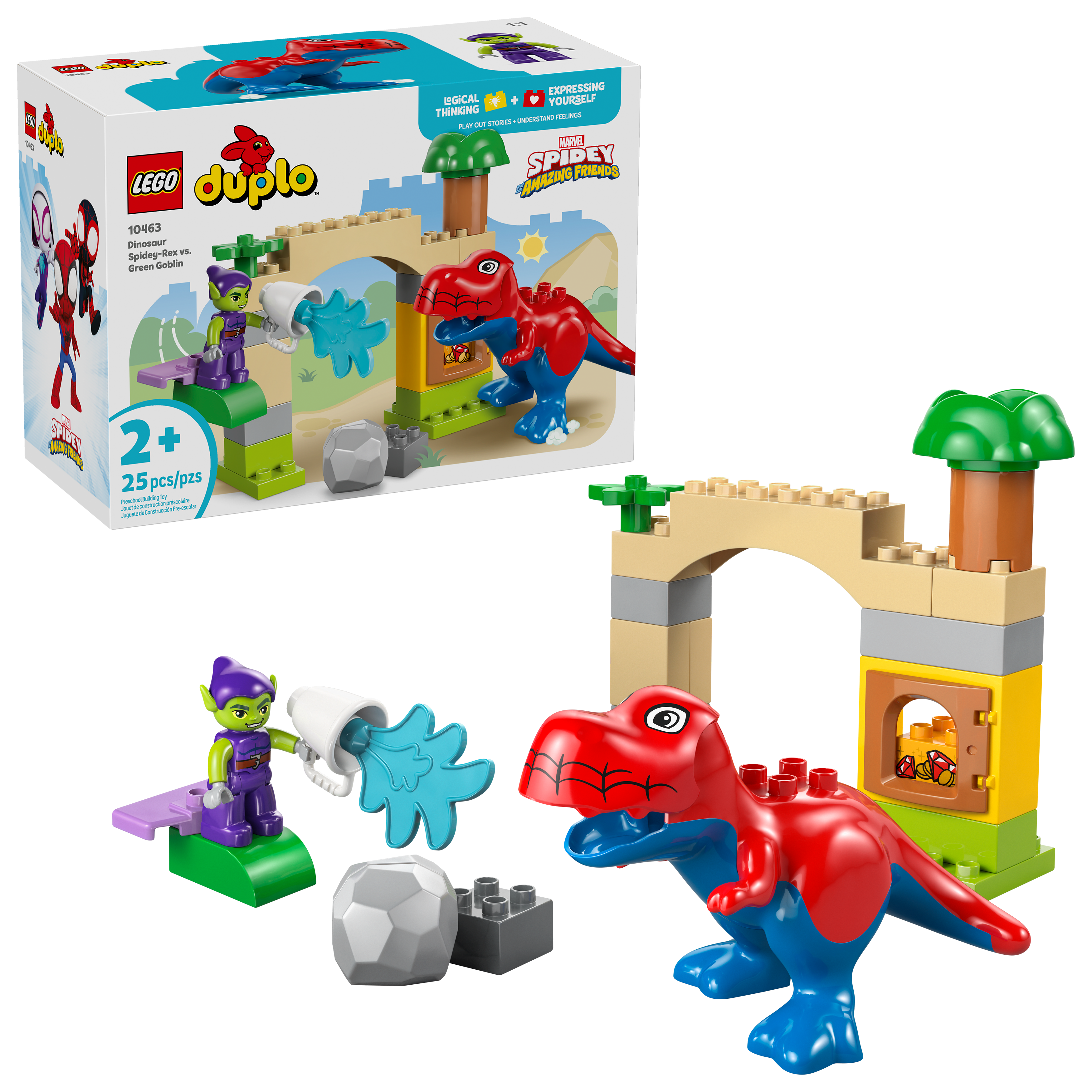 LEGO® DUPLO® │Marvel Spidey-Rex vs. Green Goblin (10463) ist ein Bauspielzeug, mit dem du den Actionspaß aus Spidey und seine Super-Freunde ins Kinderzimmer holst. Kleinkinder können Szenen aus ihrer Lieblingsserie nachspielen und Spidey-Rex helfen, den Schatz zu beschützen.