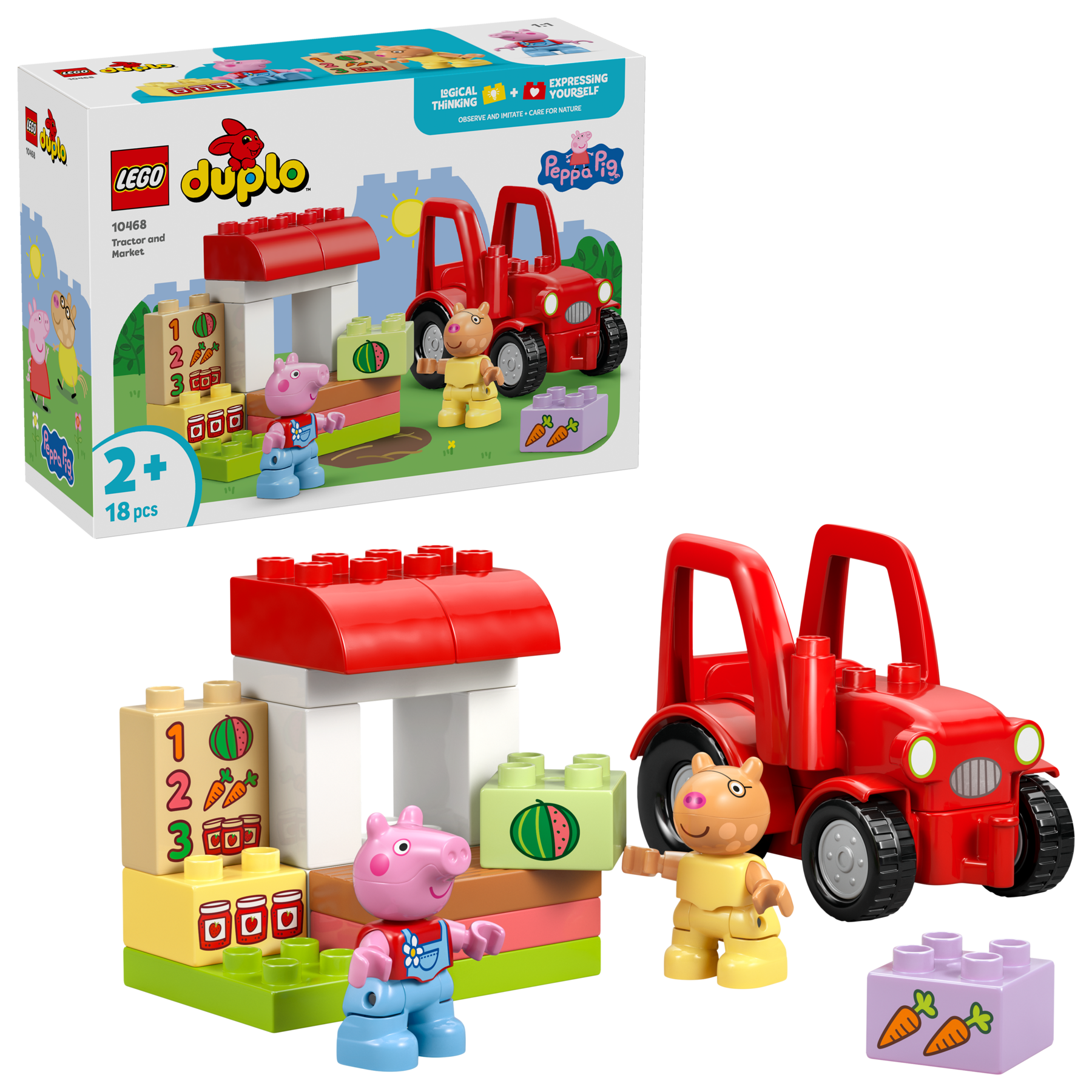 PEPPA WUTZ SPIELZEUG: LEGO® DUPLO® Peppa Wutz Traktor und Marktstand (10468) ist ein Bauspielzeug, das Kleinkinder ab 2 Jahren Szenen aus ihrer Lieblingsserie nachspielen und so tun lässt, als würden sie einen Marktstand betreiben