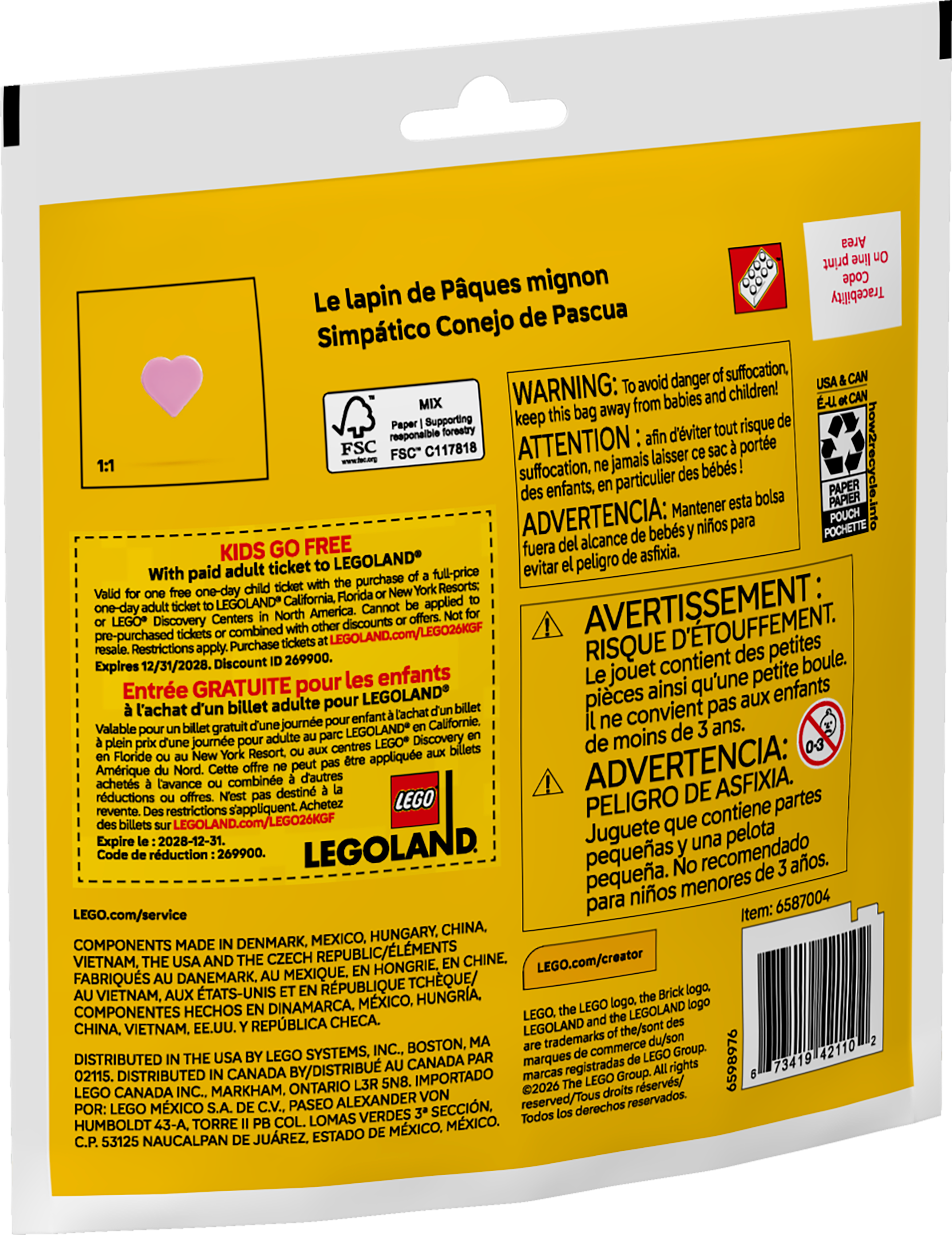Kinder ab 6 Jahren werden an Ostern große Freude an diesem LEGO® Spielset haben. Ein Putziger Osterhase mit beweglichen langen Ohren sowie 3 bunte Ostereier und eine Karotte laden zum Spielen ein.
