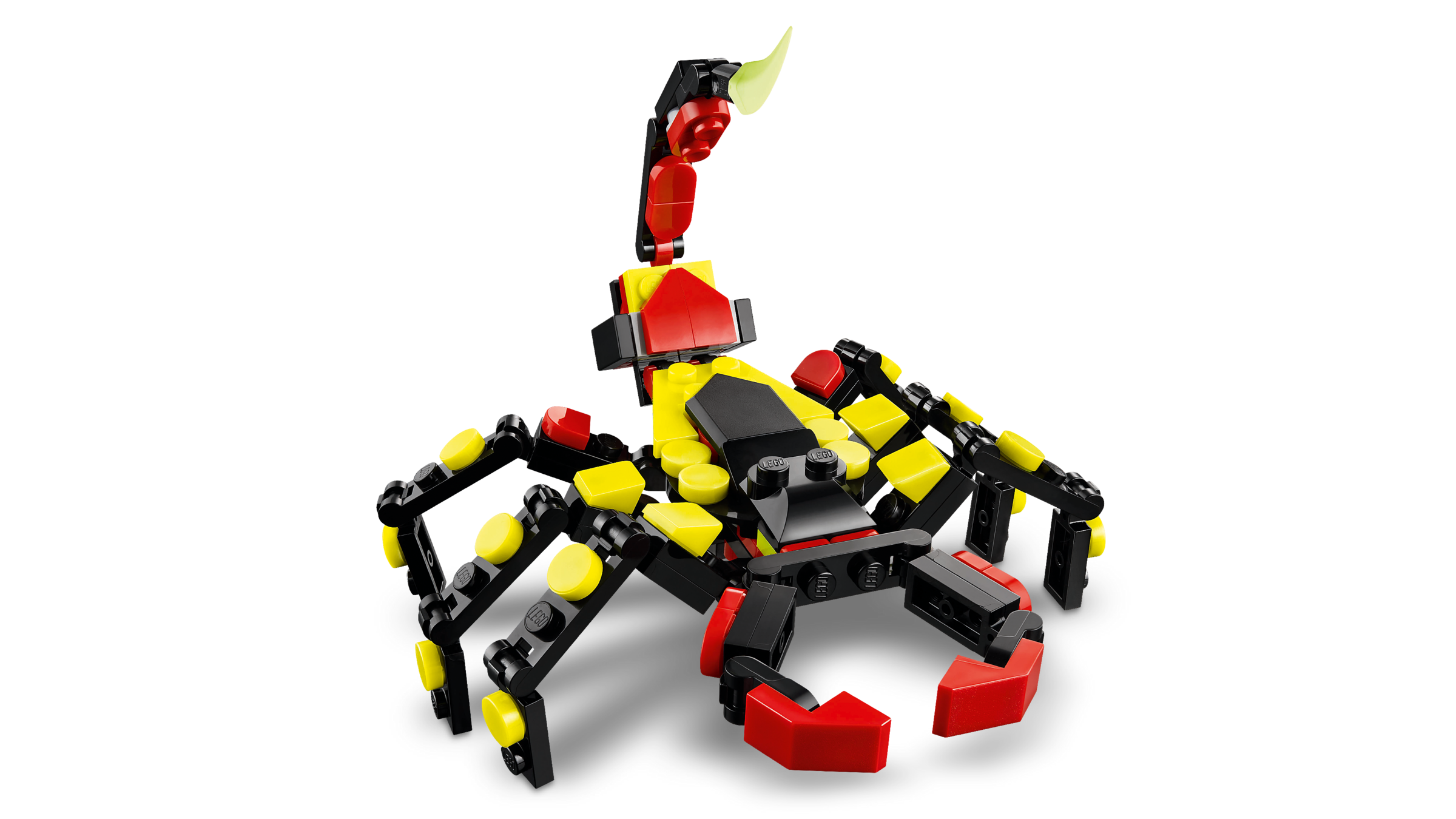 Fans cooler Tiere können aus denselben LEGO Steinen 3 verschiedene Figuren bauen: eine bewegliche LEGO Spielzeugspinne mit ausziehbarem Netz, einen beweglichen Skorpion oder eine majestätische Schlange. Dieses 3-in-1-Spielset mit einem Spielzeugtier zum Umbauen lässt Kinder kreativ spielen und ist ein tolles Geschenk.