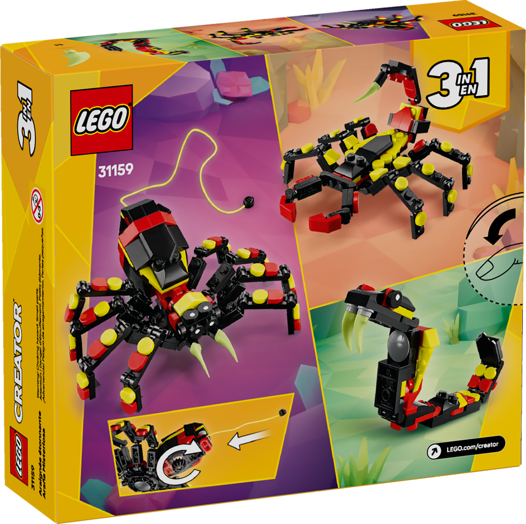 • 3 wilde Tiere in 1 Box: LEGO® Creator Wilde Tiere: Überraschungsspinne ist ein Spielzeug, das Kinder ab 7 Jahren 3 verschiedene Tierfiguren aus denselben LEGO Steinen bauen und immer wieder umbauen lässt