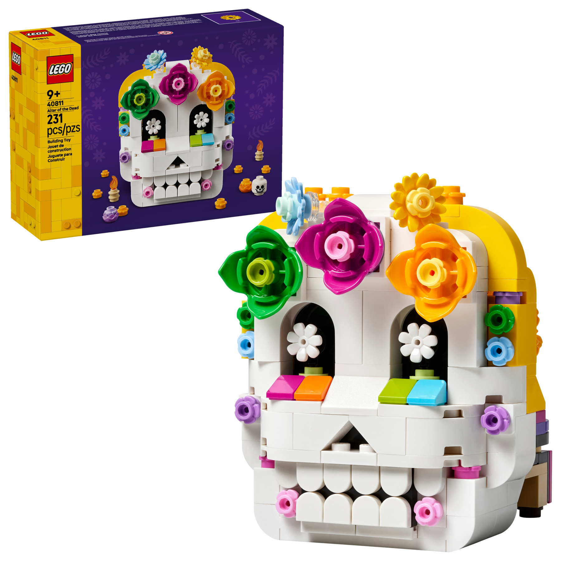 Tauche ein in das bunte Treiben und feiere den Día de los Muertos! Mit dem LEGO® Opferaltar (40811) können Kinder ab 9 Jahren und erwachsene LEGO Fans ein kreatives Bauprojekt erleben und den mexikanischen Feiertag auf spielerische Weise kennenlernen. Das Modell zum Tag der Toten begeistert mit farbenfrohen Details: Auf der einen Seite zeigt es einen Totenkopf, geschmückt mit LEGO Blumen, auf der anderen einen Altar mit Blumenbogen und verschiedenen Speisen als Opfergaben. Dieses besondere Set eignet sich sowohl als festliche Dekoration für den Día de los Muertos als auch als Geschenk für Kinder und Familien, die Freude daran haben, mehr über eine wichtige Tradition Mexikos zu lernen und kreativ zu feiern.