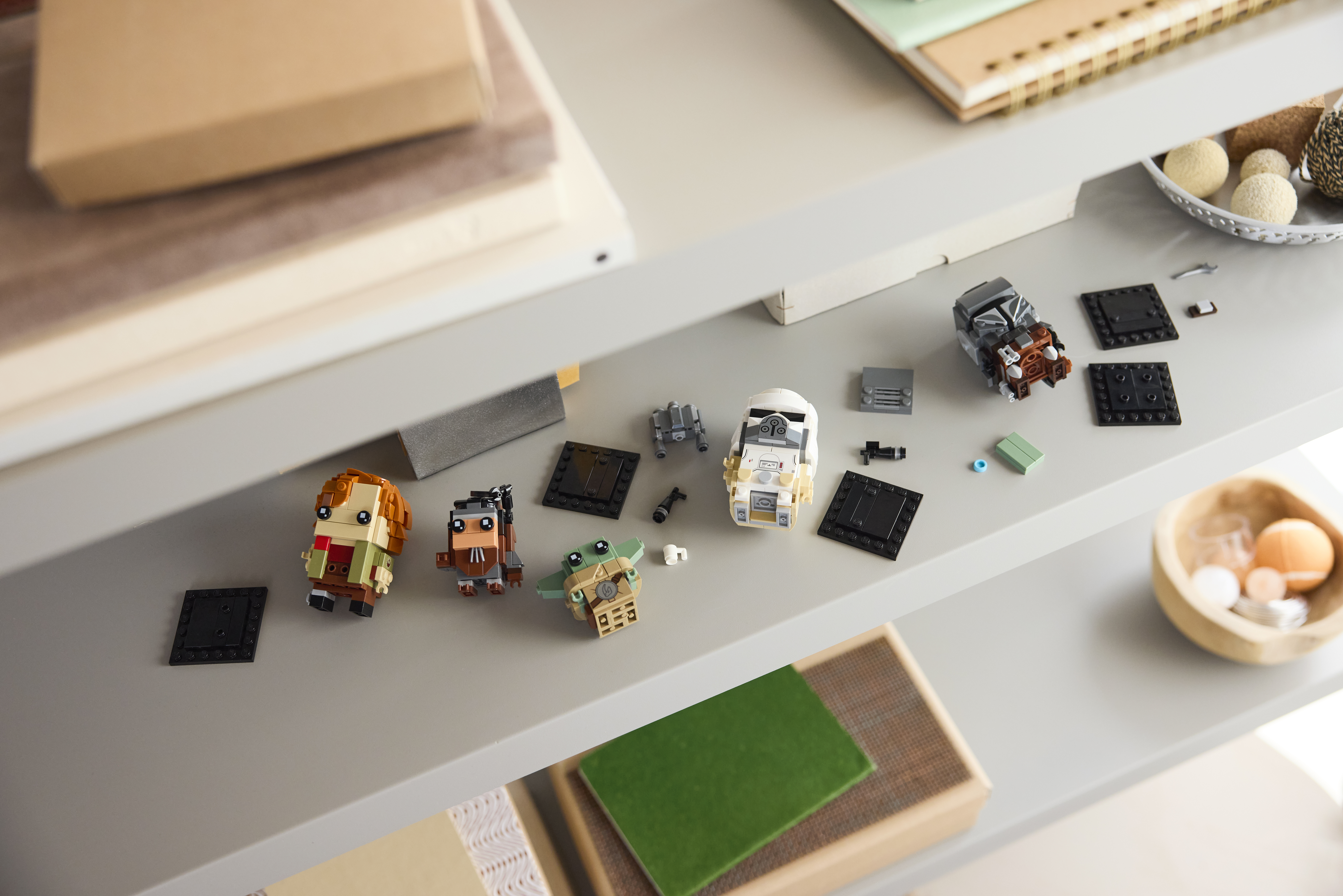 5 CHARAKTERE: Die fünf LEGO® Star Wars™ BrickHeadz™ Figuren stellen den Mandalorianer, Grogu, Colonel Ward, einen Schneetruppler des Restimperiums und einen Anzellaner mit authentischem Zubehör dar