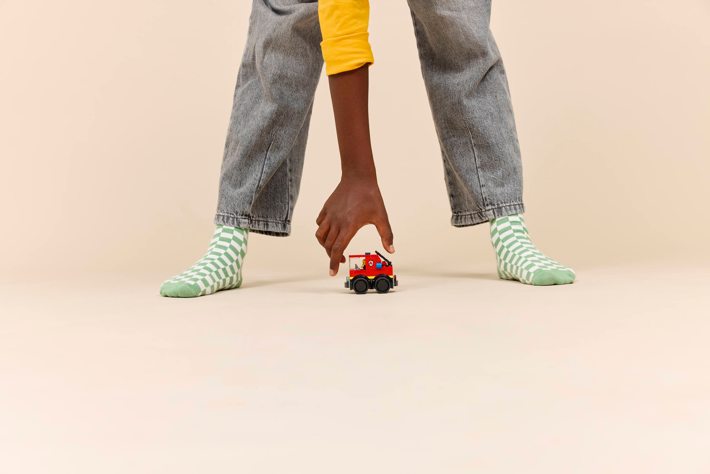 SPIELZEUGAUTO FÜR KREATIVEN SPIELSPASS: Das Mini-Löschauto hat klobige Reifen und eine ausfahrbare Feuerleiter für viele fantasievolle Geschichten