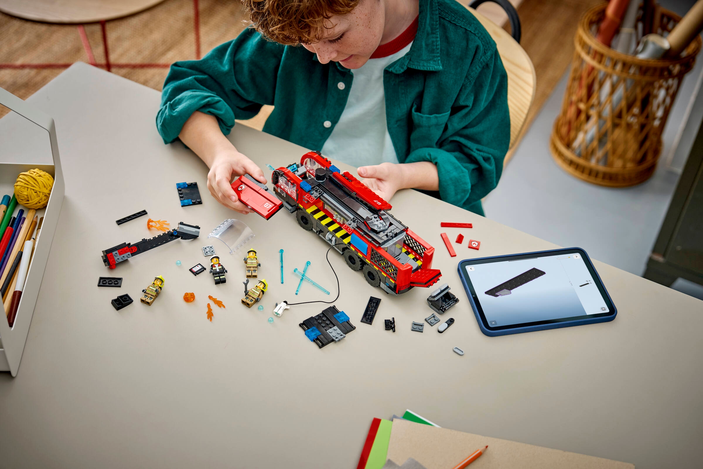LEGO® MINIFIGUR-ZUBEHÖR: Dieses Spielset beinhaltet Feuerwehrhelme, einen Schraubenschlüssel und ein digitales Schreibpad