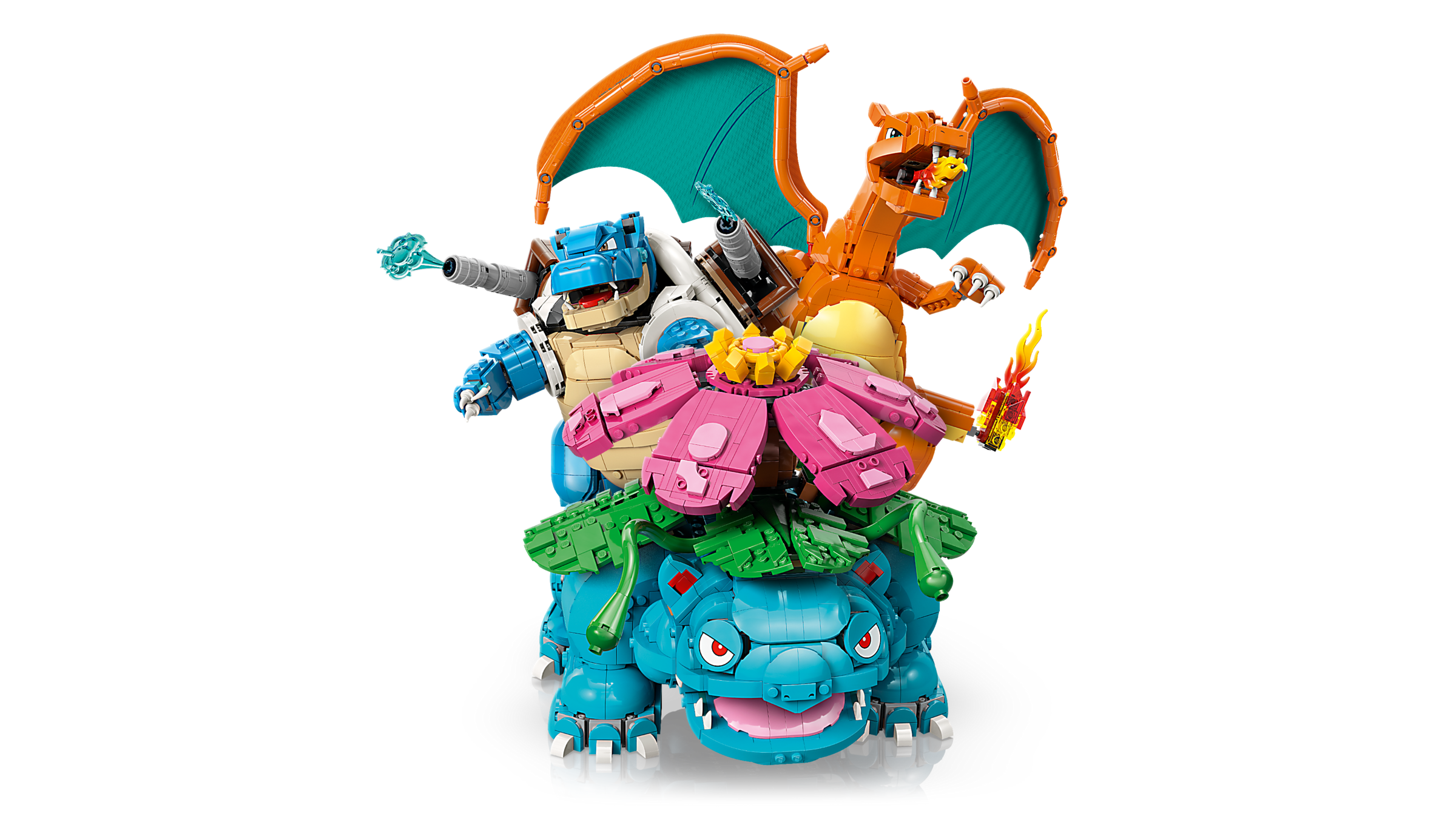 ABMESSUNGEN: Dieses 6.838-teilige Pokémon-Bauset beinhaltet Bisaflor, Glurak und Turtok, die 23 cm, 20 cm bzw. 18 cm groß sind