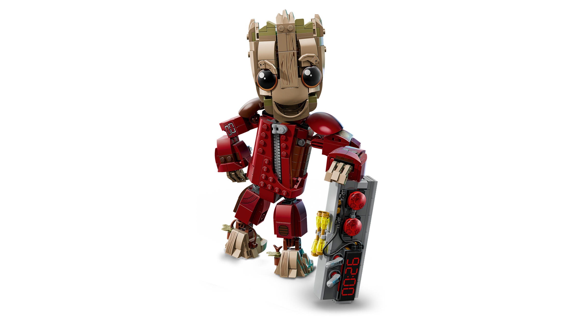 GUARDIANS OF THE GALAXY VON DEN MARVEL STUDIOS: Die LEGO® ǀ Marvel Figur hat einen Sprengsatz mit 2 Knöpfen und 2 Hebeln, damit Kinder Filmszenen nachspielen und fantasievolle eigene Abenteuer darstellen können