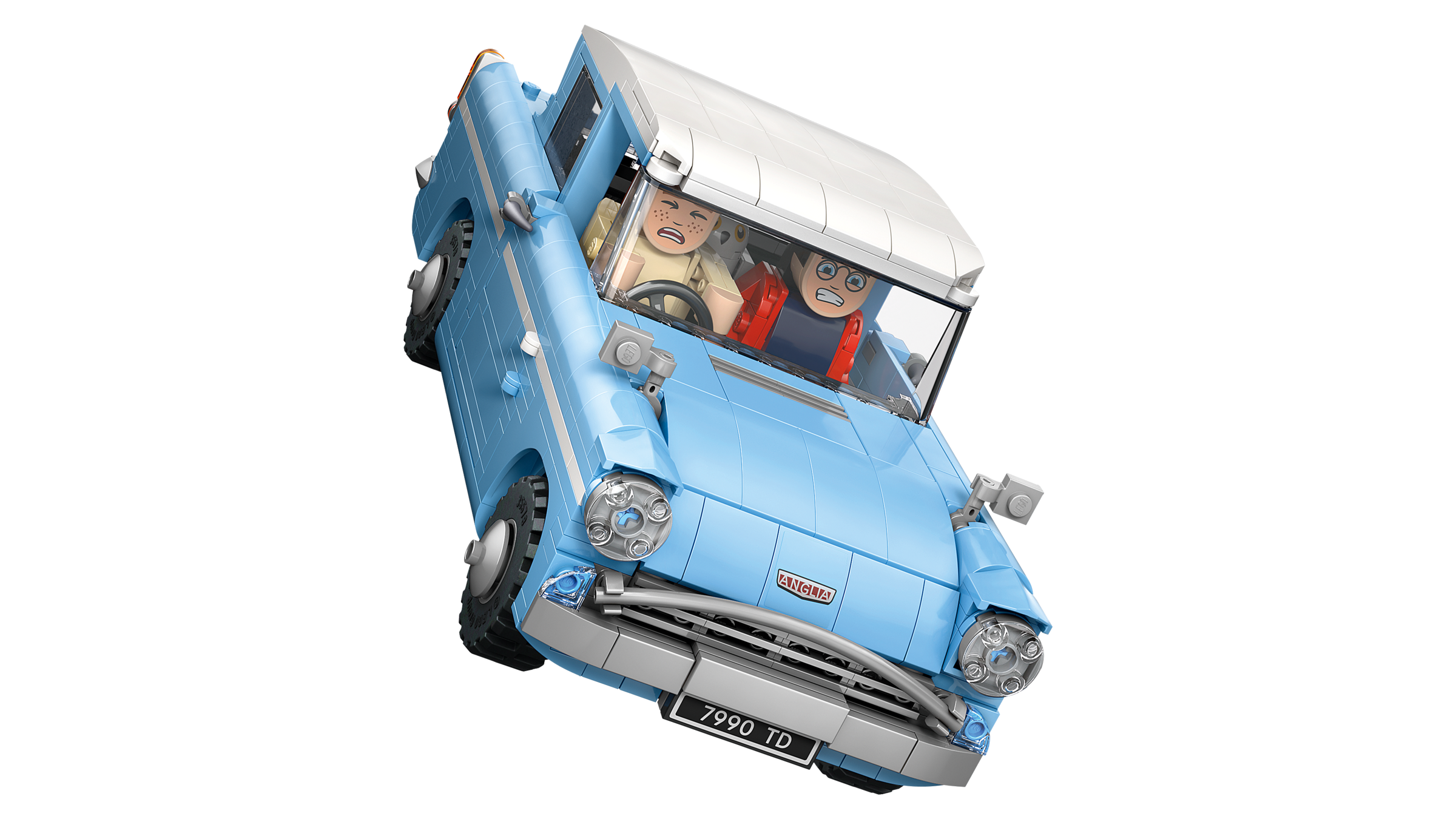 3 LEGO® HARRY POTTER™ CHARAKTERE: Steck Ron Weasley™ und Harry Potter aus LEGO Steinen zusammen mit Harrys Eule Hedwig™ ins Auto, um legendäre Filmszenen nachzuspielen